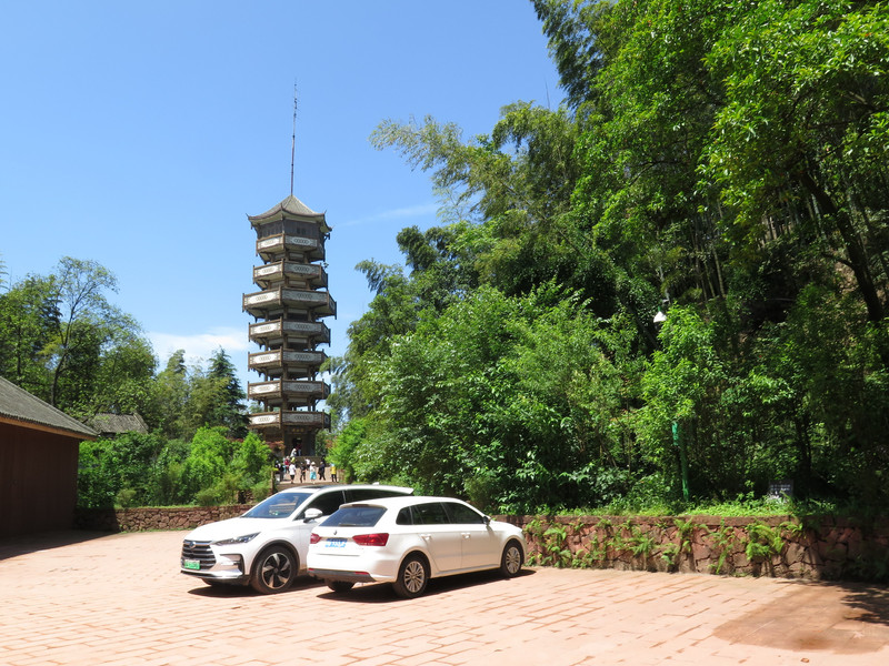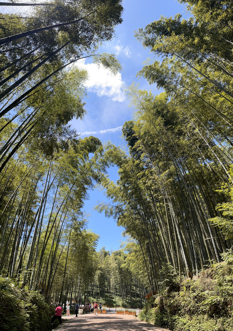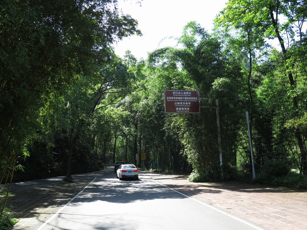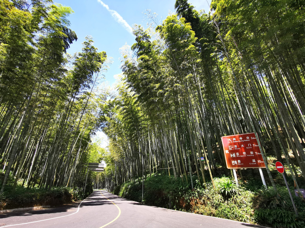 即将到达景区,公路旁有一处观景台,放眼望去,竹林翠绿,浩瀚无边,真正是竹的世界、竹的海洋。