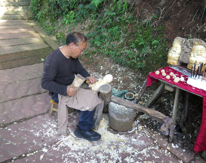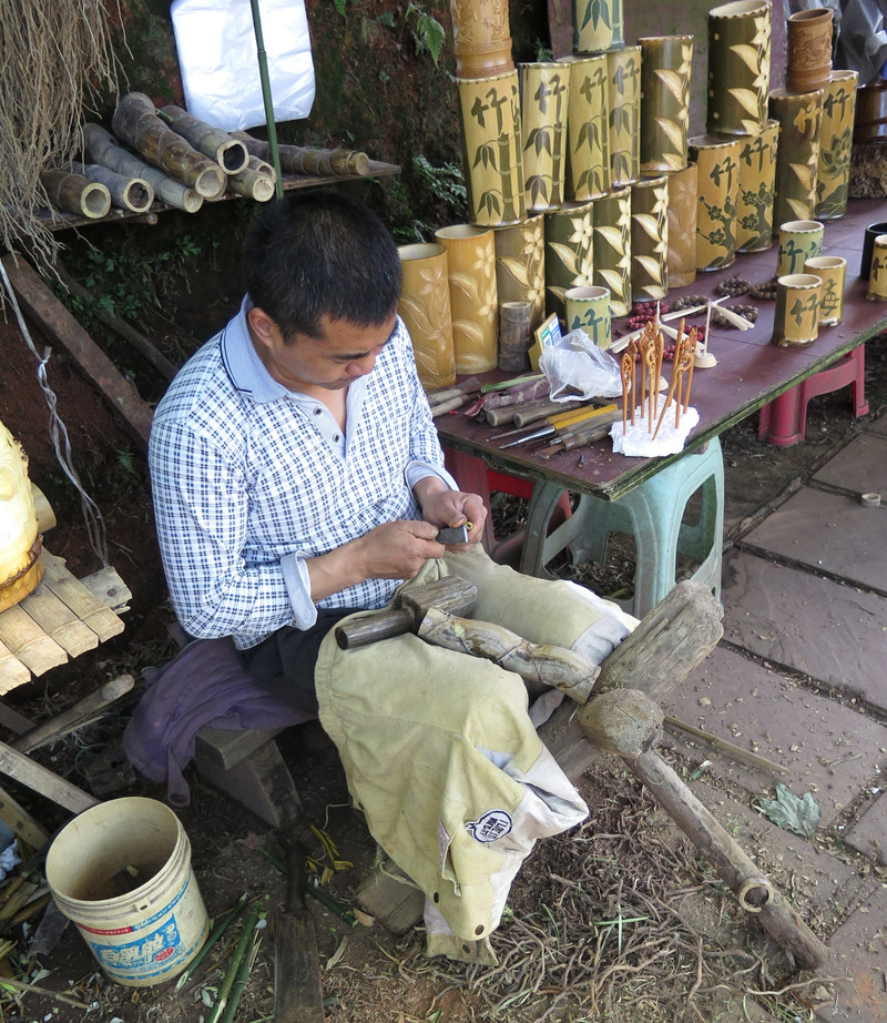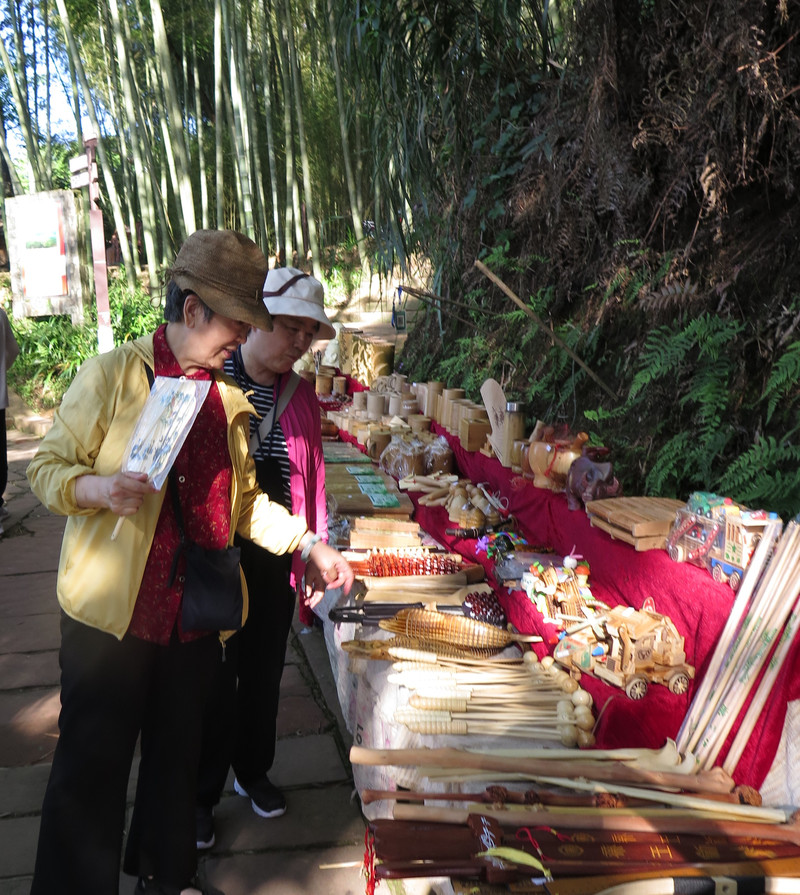 游览步道旁有几处摊点,售卖竹制手工艺品,还有匠人现场制作。