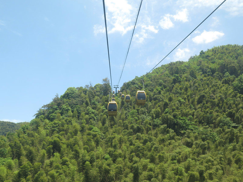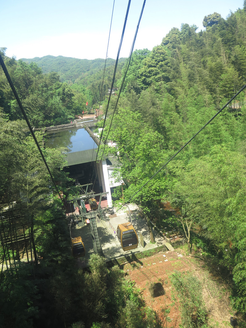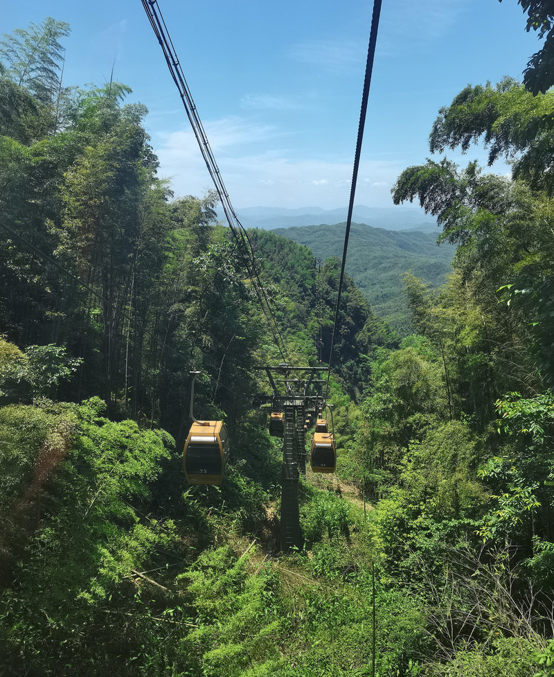 缆车全程2786米,单程23分钟,可从墨溪谷底直达望海楼和翡翠长廊。缆车逐渐上升,环顾四面,满目皆竹,如在竹海中荡舟,沉浸于波峰与浪谷之间,潇洒惬意走一回。
