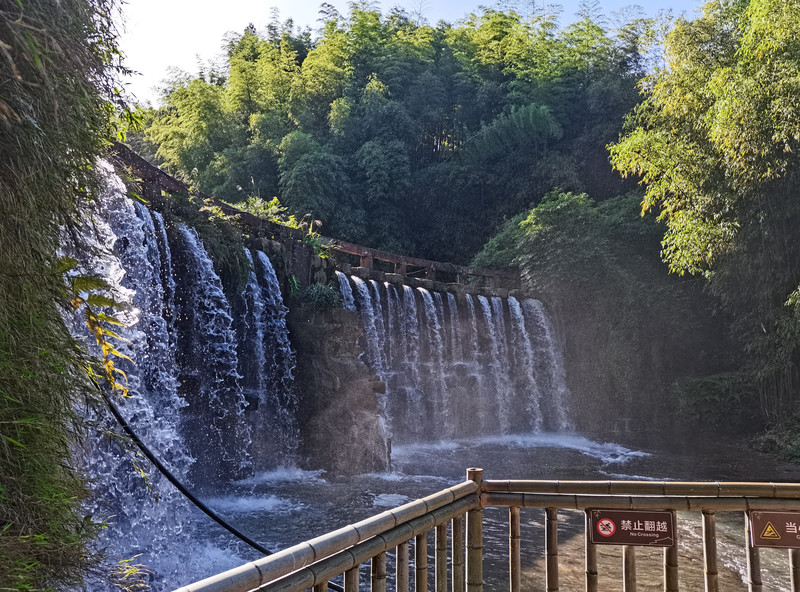 七彩飞瀑原名落魄台,竹海当地有句名谚:“不到落魄台,枉到竹海来。”景区内有落魄台、古战场、浩然洞、月亮湾瀑布等景点。