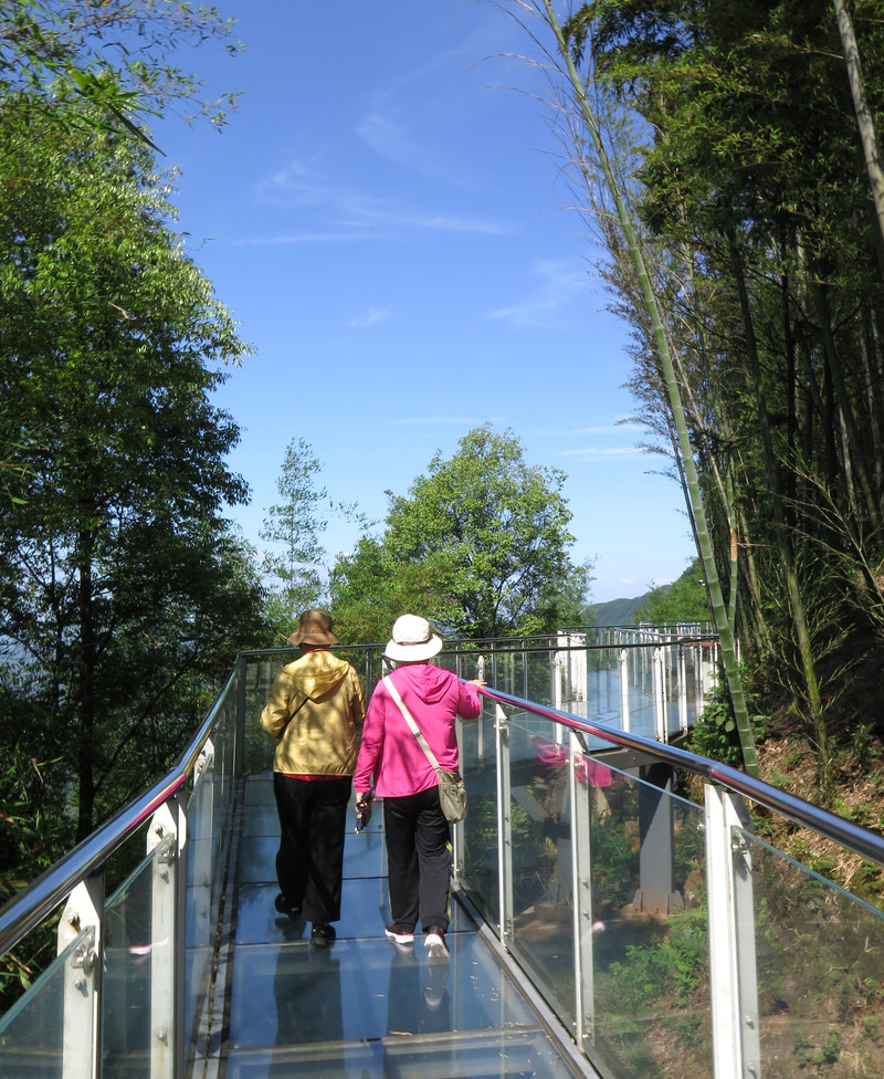 这里修建了一条玻璃栈道,底部虽然透空,但高度不大,对恐高者很友好。