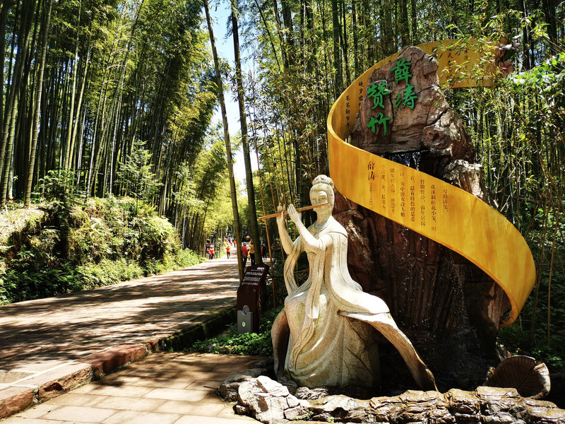 人物雕像-薛涛赞竹,薛涛(768-832),唐代才女,长安人,随父入蜀,最有特色的诗篇是爱竹敬竹诗。前几日去九寨沟经过松潘古城时曾见她的雕像。