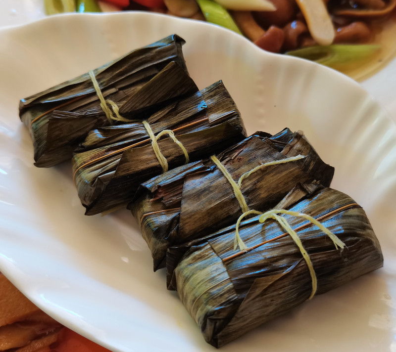 这盘是老板赠送,竹叶包裹糯米,类似粽子,好吃。