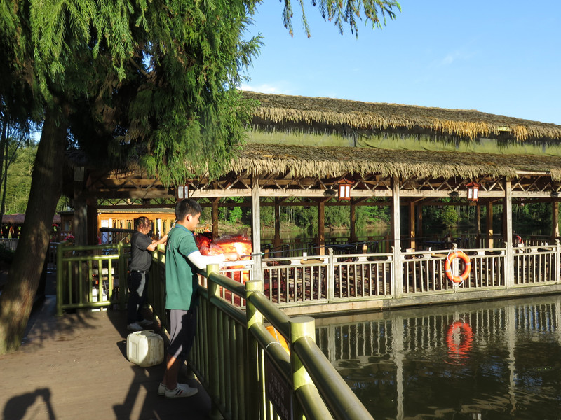 幸亏将午、晚餐的菜单拍照,否则记不住菜名。这些菜都属于景区的“全竹宴”,“全竹宴”共计有100多个菜品,每一道菜都跟“竹”有直接或间接的联系。以竹笋、竹荪蛋、竹荪、竹菌、竹海腊肉、竹筒豆花、竹筒饭、竹荪酒、竹泡菜等“竹”菜汇成,又被称为“熊猫宴席”。